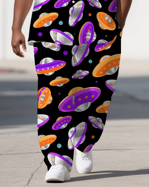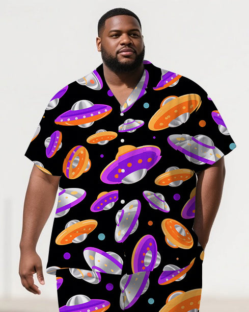 Men's Cartoon World Funny Spaceship Printed Big & Tall Short-Sleeve Shirt Pants 2-Piece Sets