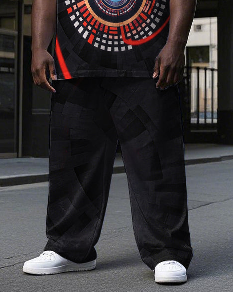 Men's Casual Abstract Vortex Square Pattern Printed Short Sleeve T-shirt Pants 2-Piece Set