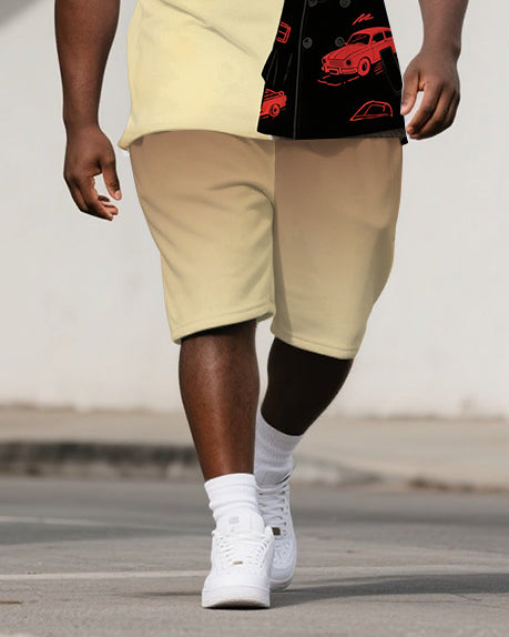 Men's Casual Detective Bear Cartoon Printed Gradient Big Size Short-Sleeve Polo Shirt Shorts Set