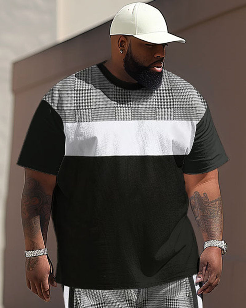 This men's set showcases classic black and white style, with a checkered and striped color block design, showing the unique charm of street style. Its loose fit provides comfort for men of all sizes and is available in a variety of sizes. A piece made for life on the go, keeping up with you from morning meetings to midnight outings.