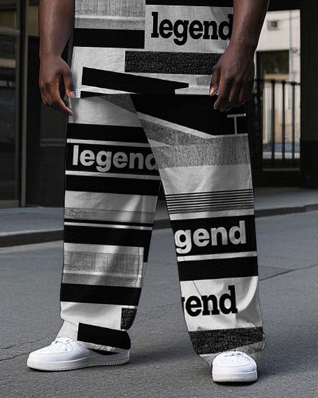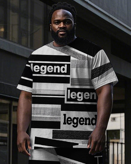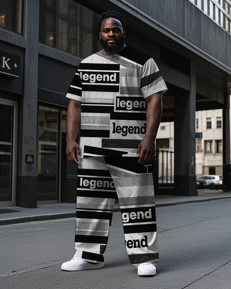 Men's Casual Legend Stripe Splicing Style Short Sleeve T-shirt Pants 2-Piece Set