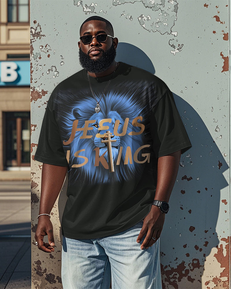 Men's Casual Lion and Cross JESUS IS KING Printed Short Sleeve T-shirts