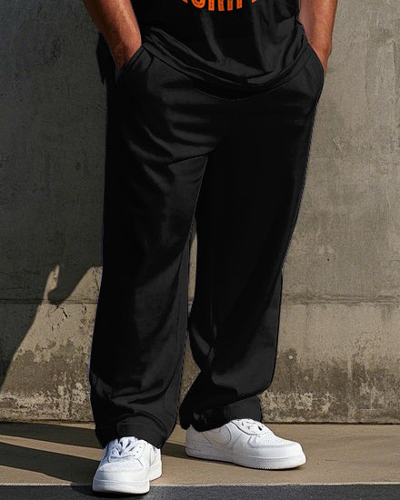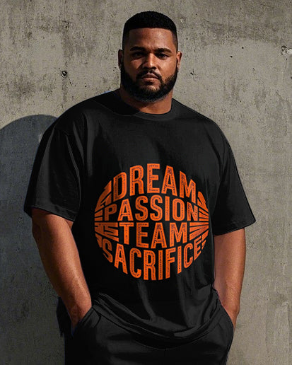 Men's Casual Simple Letter Ball Silhouette Printed Big and Tall Short Sleeve T-shirt Pants Set