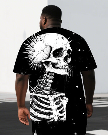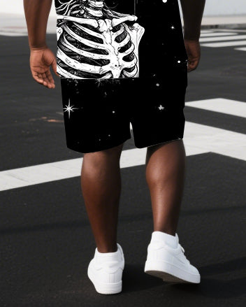 Men's Casual Skull Illustration Back Print Big & Tall Breathable Short-Sleeve T-shirt Shorts Set