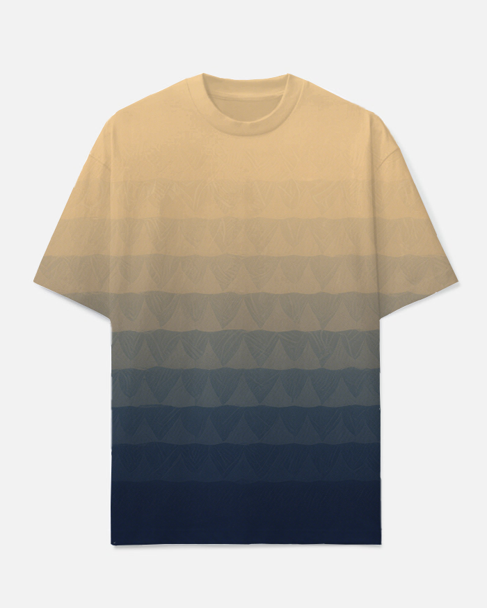 Men's Chic Layered Gradient Beige & Blue Casual Big and Tall Short Sleeve T-shirts