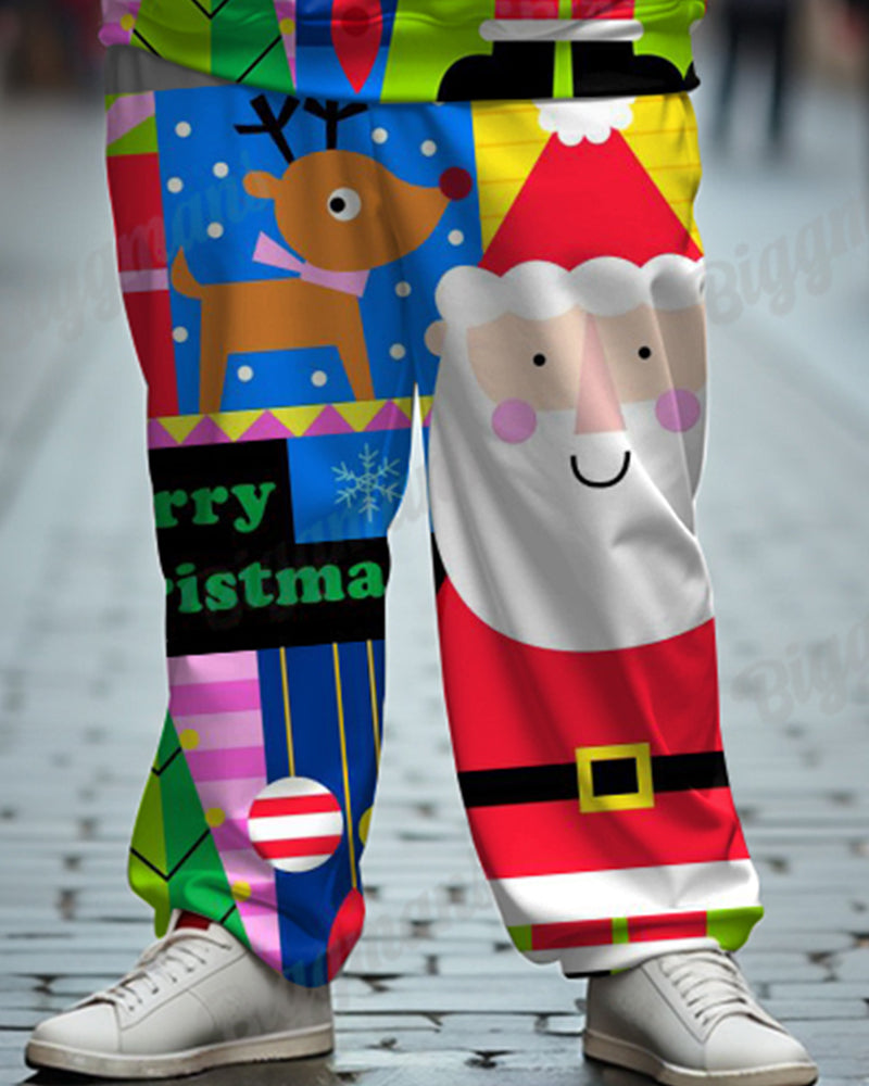 This is your go-to to spread holiday cheer. Featuring a vibrant mix of colorful reindeer and Santa Claus graffiti, this set is both stylish and comfortable. With a loose fit and a bold design, this set gives you fun and makes you the star of the show.