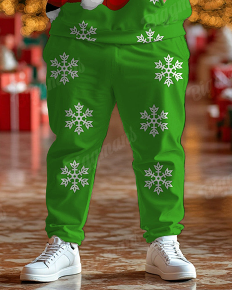 Get ready for the holidays with this ! This vibrant green ensemble features playful prints of Santa and snowflakes, immersing you in the festive spirit. Step into the season with this stylish, comfortable set and ready for Christmas Day!