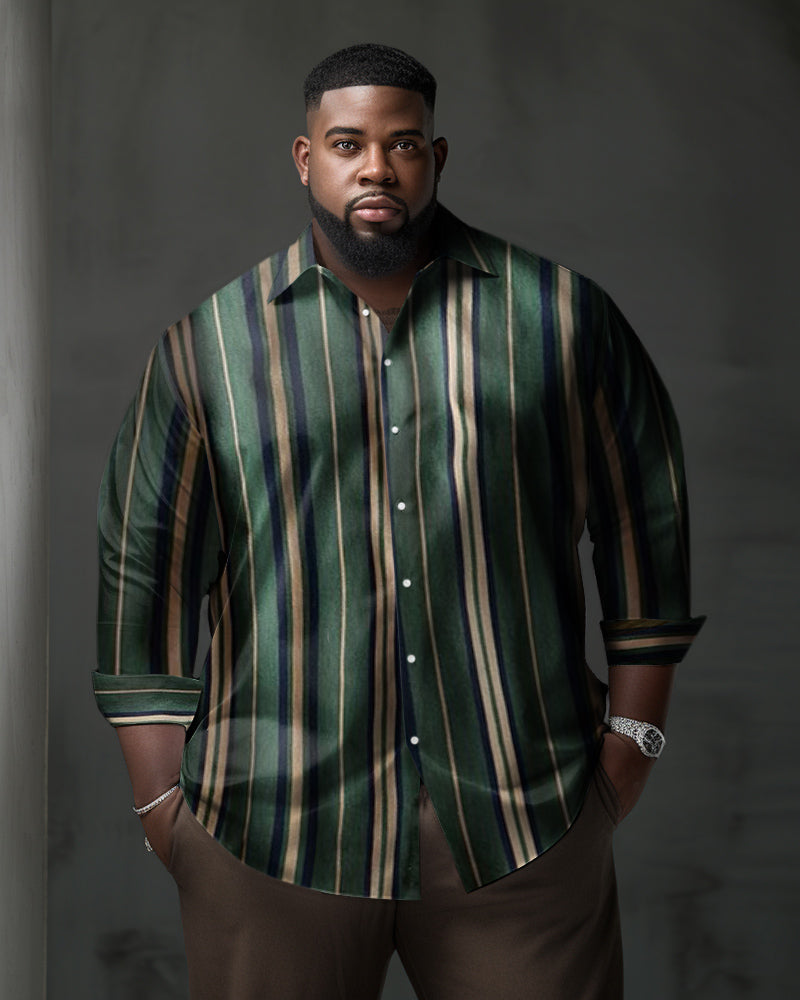 Discover our big guy's shirt, a masterpiece of minimalist modern fashion. Featuring green stripes with yellow and blue accents, this shirt adds visual interest to your wardrobe. The tailored fit flatters your physique, enhancing your natural lines. This set can bring a fresh, fashionable twist to your daily wear.