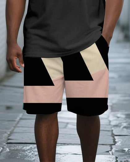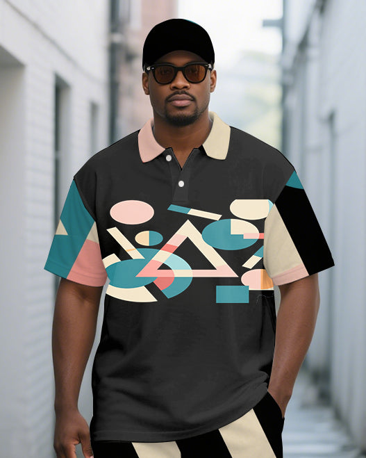 Men's Classic Geometric Printed Casual Big and Tall Short-Sleeve Polo Shirt & Shorts Set