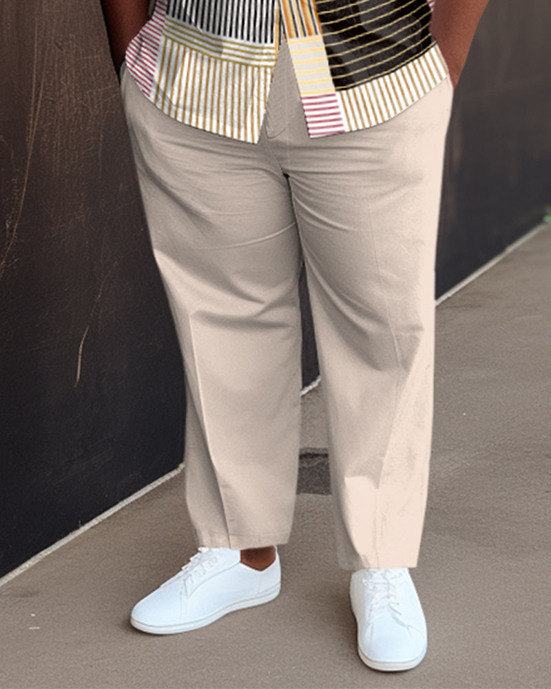 Classic and elegant, this khaki set is a refined choice for big & tall gentlemen. Featuring plaid and stripe designs, it is suitable for a variety of occasions. The loose version adapts to the big body, providing comfort and confidence. This walking set is fashionable and versatile, showing your personality and charm.