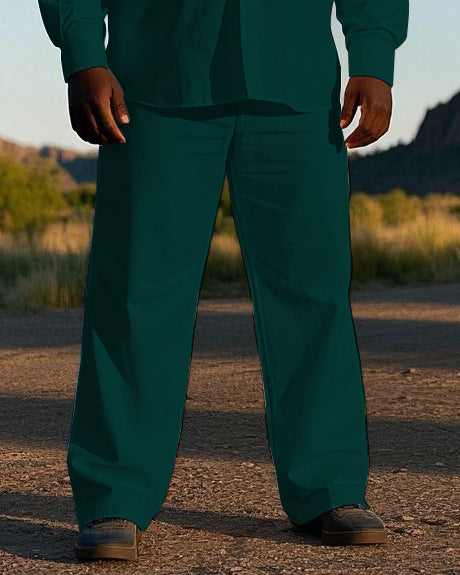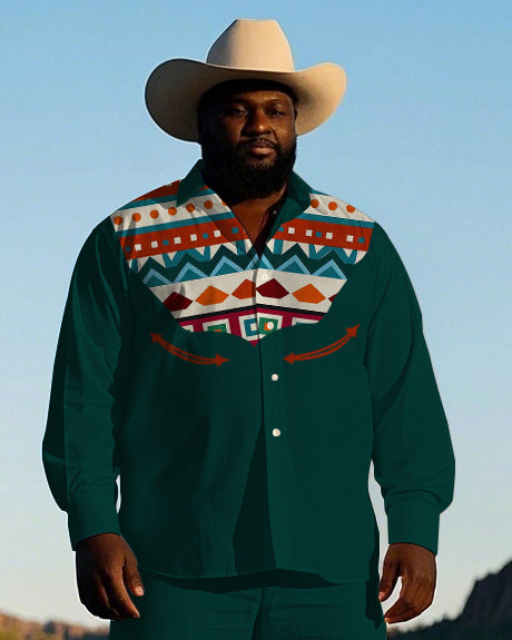 Men's Cowboy Western Style Geometric Pattern Printed Big and Tall Long Sleeve Shirt Pants Set