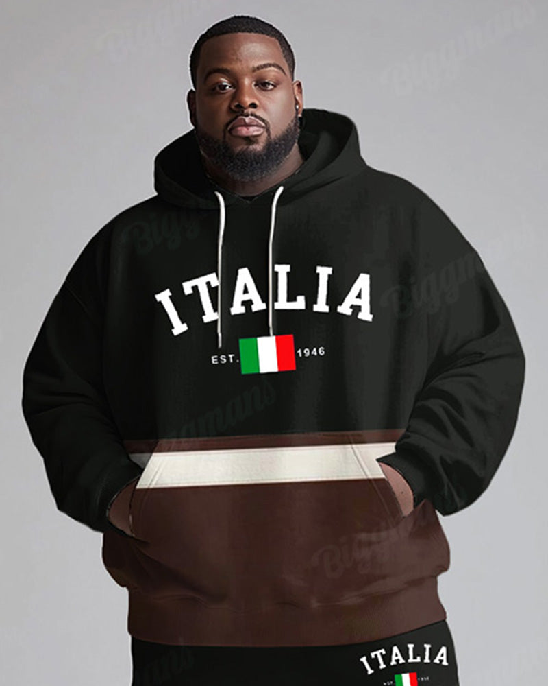 Show your flair with this men’s big & tall hoodie set, featuring color-block panels and an “ITALIA” print that adds regional charm. Crafted from stretch-enhanced fabric with a relaxed fit, it offers comfort without sacrificing style. This set delivers a confident, easygoing look with a refined European edge.