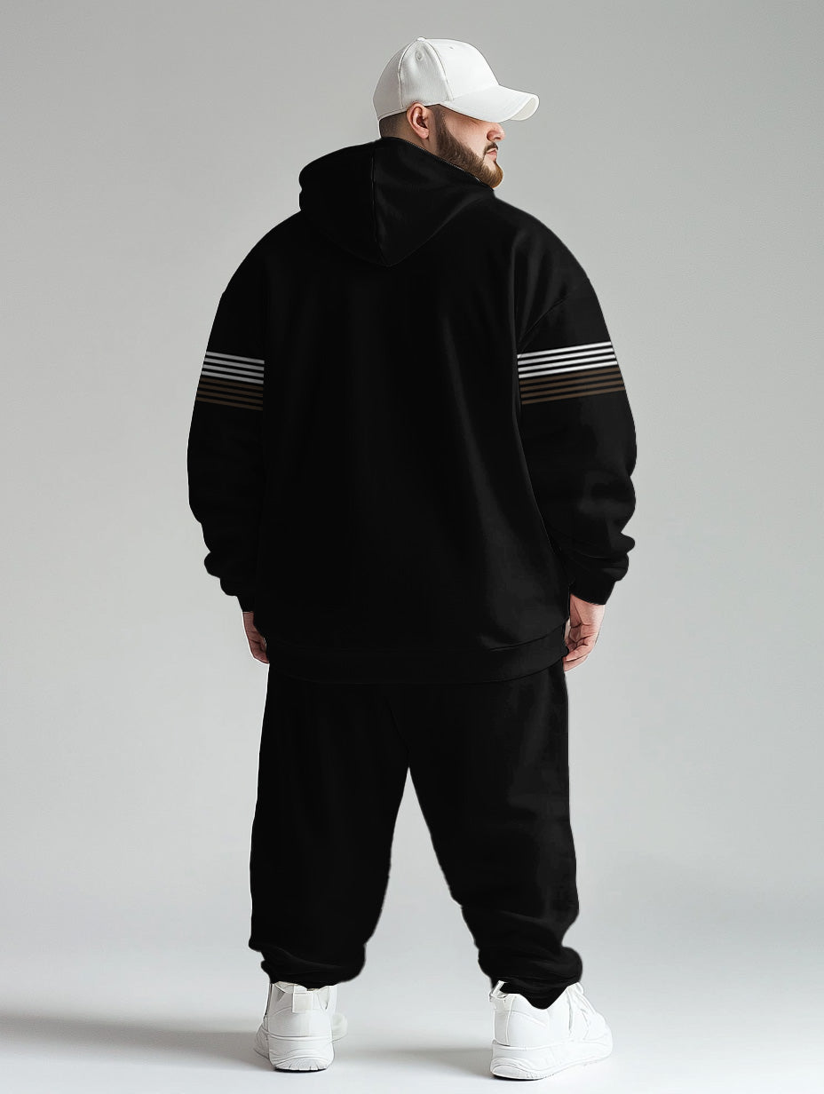 Elevate your street style with this men's big & tall hoodie set, where stripe panels create dimensional minimalism. The premium cotton-blend fabric and tapered leg design provide sleek comfort, while the subtle tonal variations add depth to your wardrobe, sharp for weekend errands or layered evening looks.
