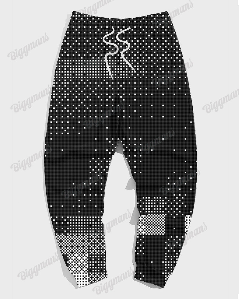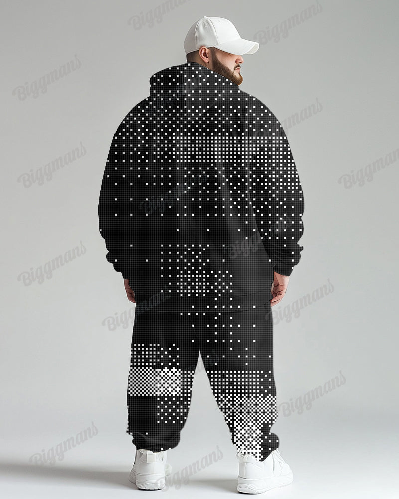 Designed with square geometric pixelated particles, this suit is modern and techy. The hooded design adds casual vitality and the trouser fit slims the legs. The overall color coordination shows unique personality, which is a perfect combination of fashion and comfort, making you stand out from the crowd.