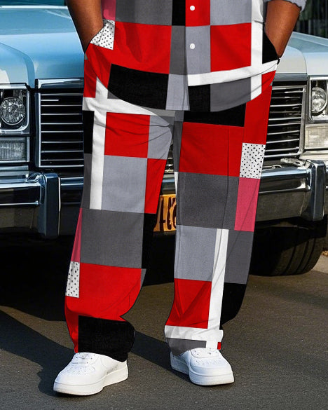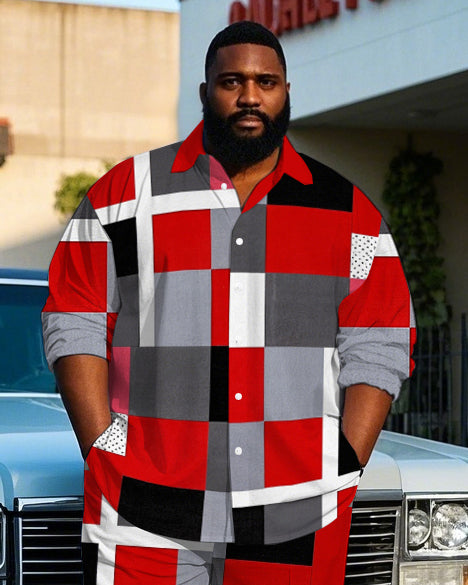 Men's Daily Casual Classic Big Plaid All Over Printed Big & Tall Long Sleeve Shirt Pants Set