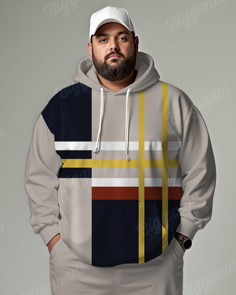Elevate your casual wardrobe with this big & tall men's hoodie set, featuring contemporary color-block stripes for modern urban appeal. The stretchy, thermal-lined fabric and relaxed fit ensure all-day comfort, while the minimalist design transitions effortlessly from weekend errands to casual workouts.