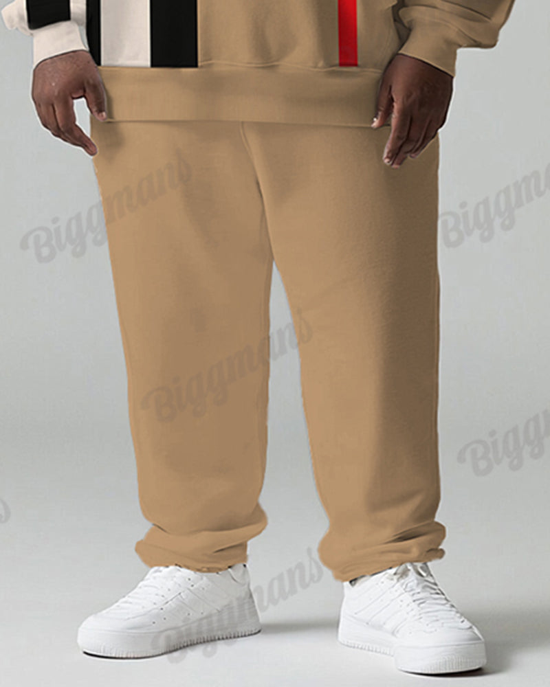 Men's Daily Casual Khachi Black And White Stripe Print Plus Size Hoodie Suit