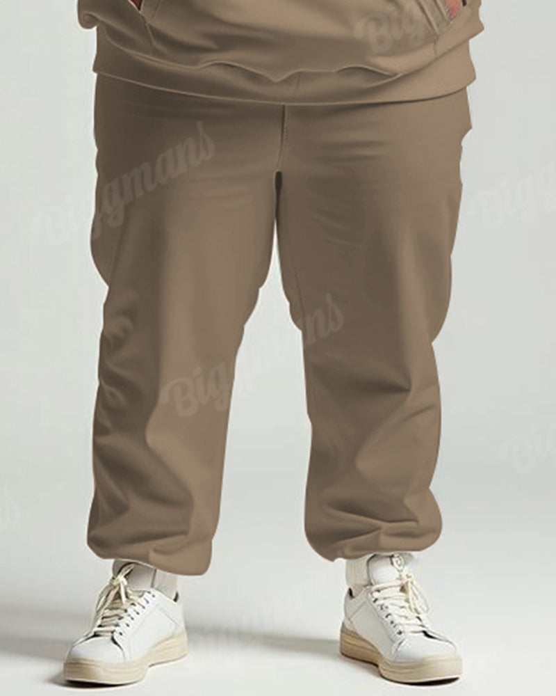 Men's Daily Casual Khaki Colorblock Striped Letter Print Plus Size Hoodie Suit
