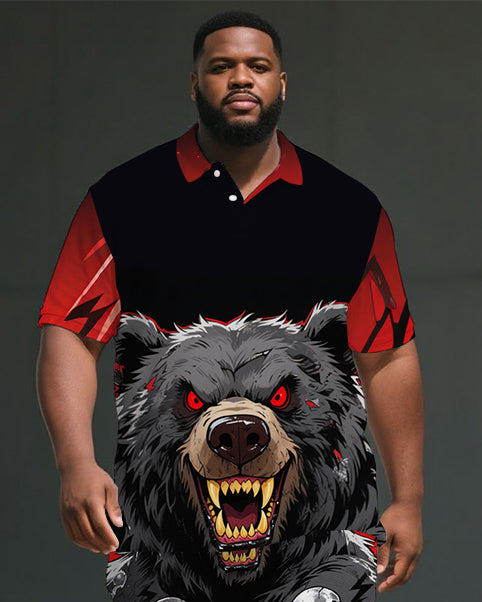 Men's Dark Style Skull and Bear Cartoon Printed Big Size Short-Sleeve Polo Shirt Shorts Set