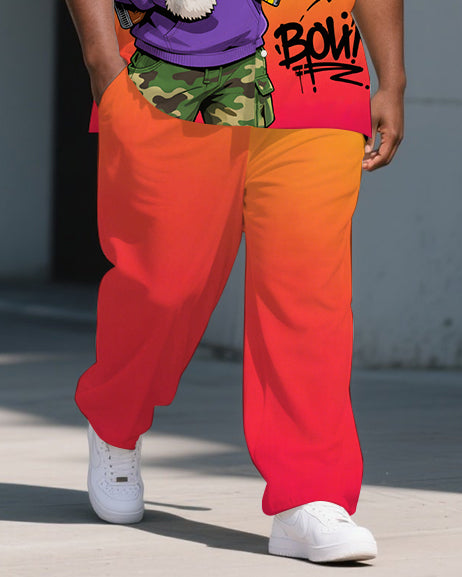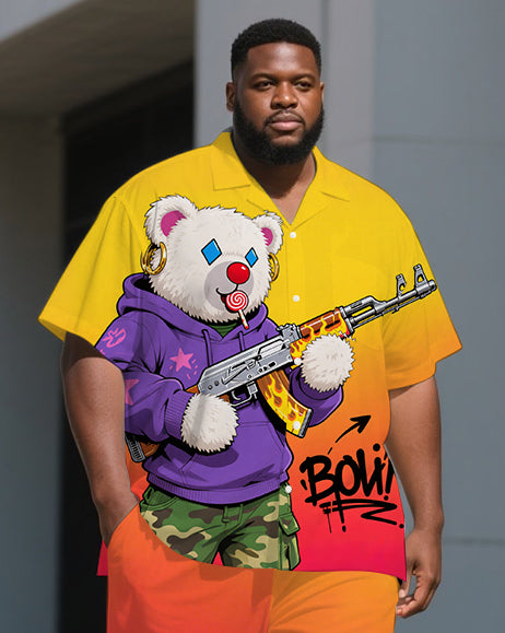 Men's Fashion Boni Bear Cartoon Gradient Effect Short Sleeve Shirt and Pants Set