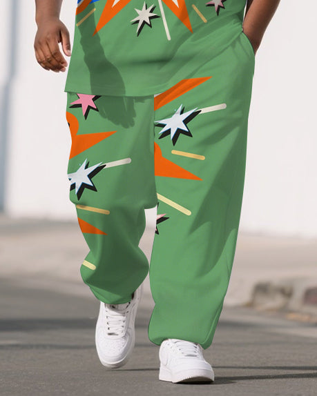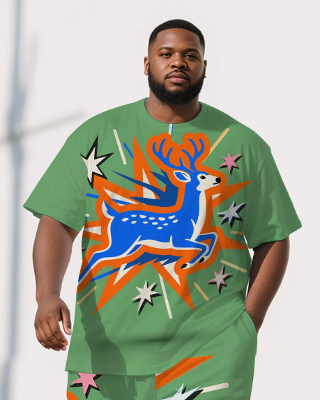 Men's Fashion Cartoon Theme Deer Printed Big & Tall Casual Short Sleeve T-shirt Pants Set