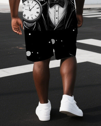 Men's Funny Mr. Rabbit Illustration Back Print Big & Tall Breathable Short-Sleeve T-shirt Shorts Set