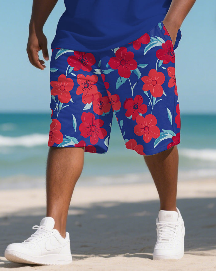 Men's Hawaiian Theme Rose Bold Printed Big & Tall Short Sleeve Polo Shirt Shorts Suit