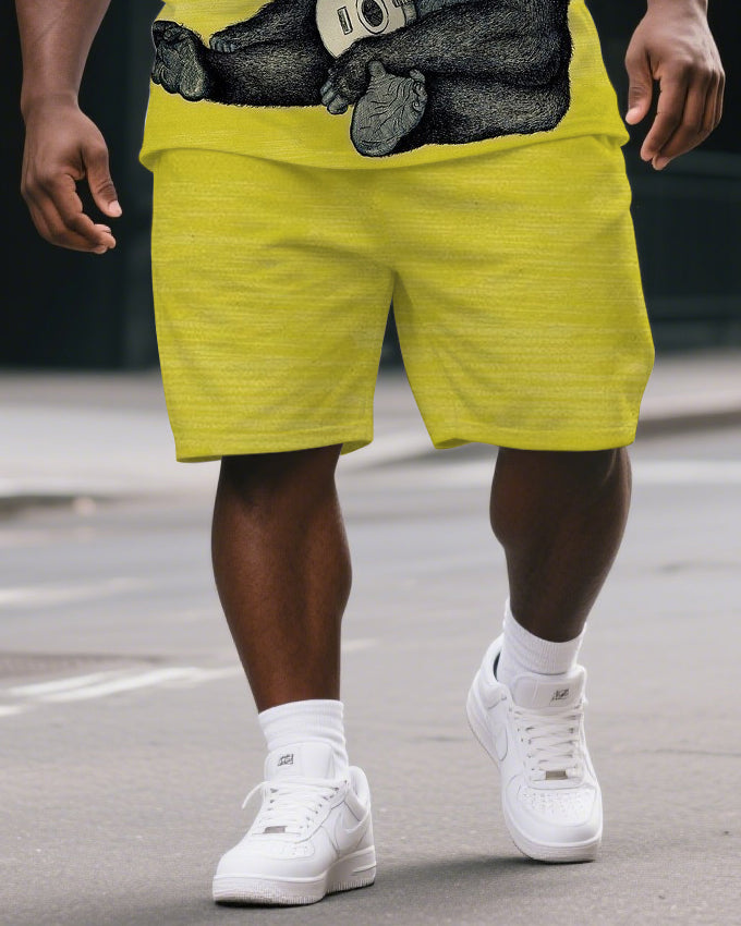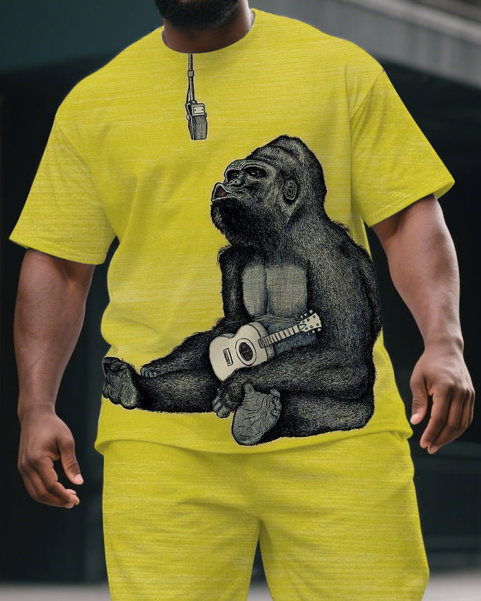 Men's Hip Hop Simple Gorillas Singer Print Casual Big & Tall Short-Sleeve T-shirt & Short Set