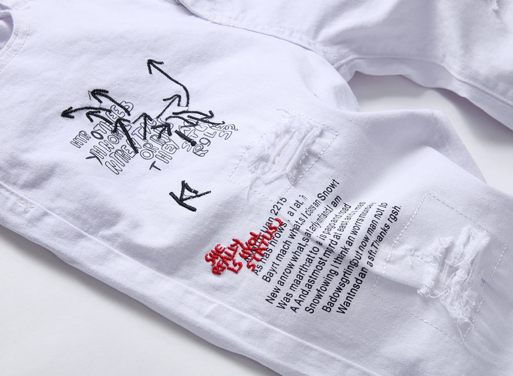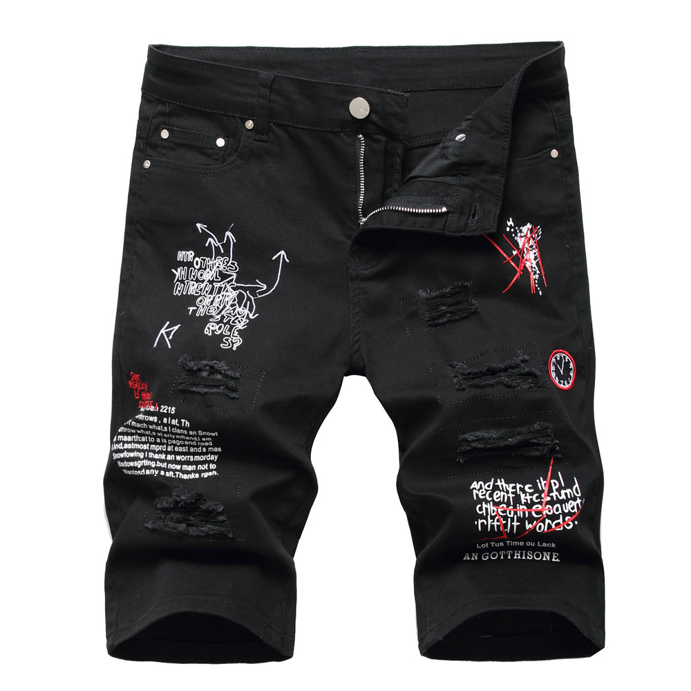 Ready to step up your street style? These big men's jeans blend edgy fashion and comfort. They feature stylish distressed accents like holes and unique graphic prints. Crafted with a relaxed fit, these shorts are available in larger sizes. They’re versatile enough for various occasions and easy to mix or match.