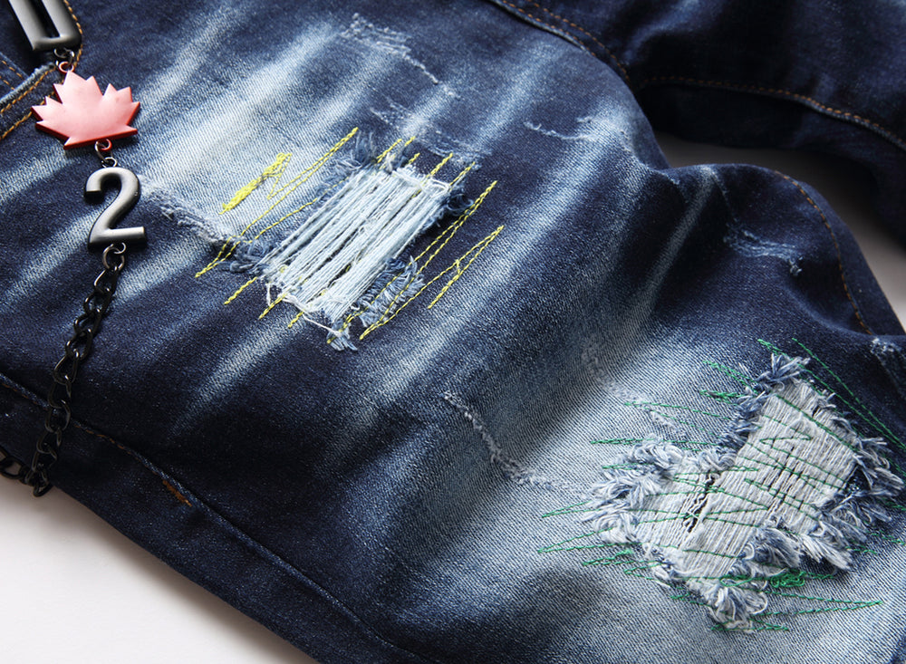 These blue are the epitome of contemporary street style. Featuring a trendy distressed design with four strategically placed rips, they bring an edgy flair to your summer wardrobe. Crafted for a loose fit, these shorts provide comfort and breathability, making them perfect for warm weather.