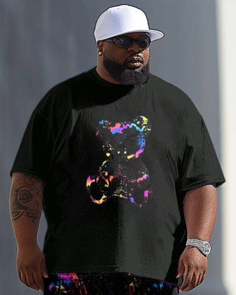 Men's Large Casual Color Ink Print T-Shirt Trousers Suit