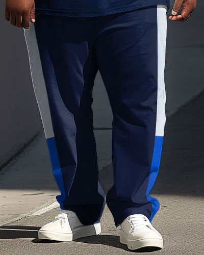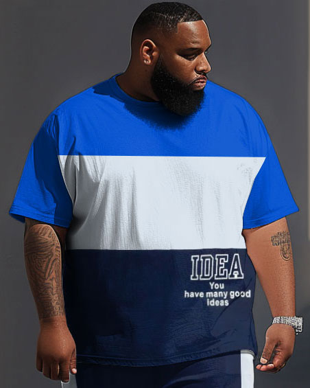 Men's Large Casual Colorblock Alphabet Print Short Sleeve Trousers Suit