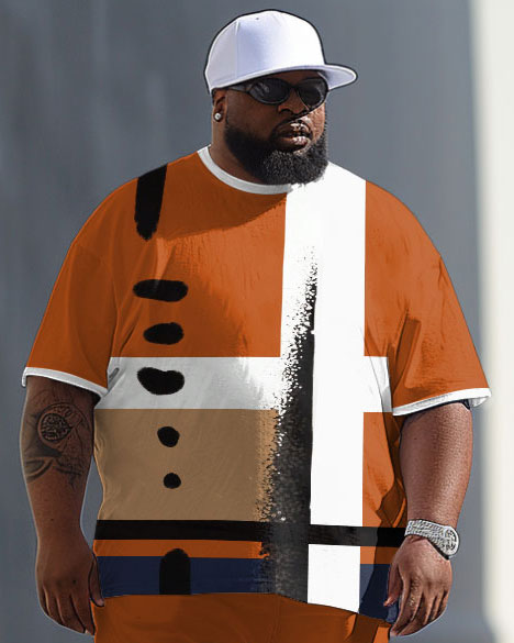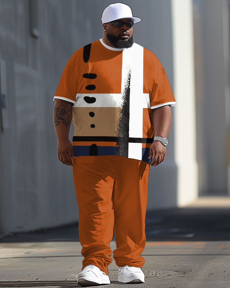 Men's Large Casual Colorblock Printed T-shirt Pants Suit