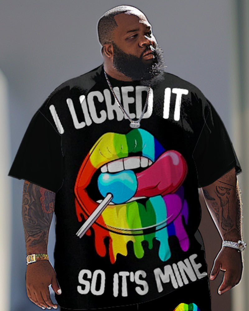 Men's Large Casual Colorful Lip Print T-Shirt Pants Suit