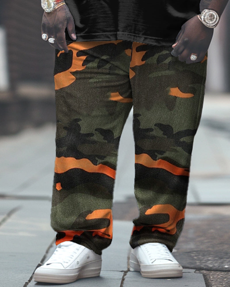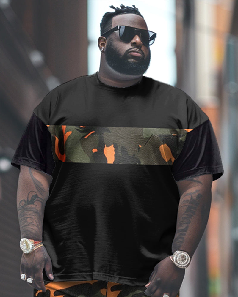 Men's Large Classic Camouflage Print T-Shirt Pants Suit