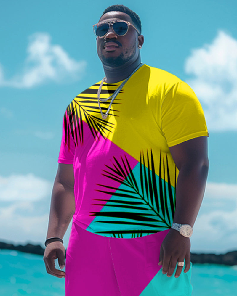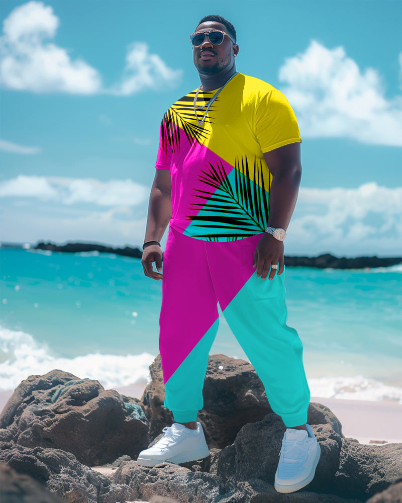 Men's Large Colorblock Floral Print T-Shirt Pants Suit