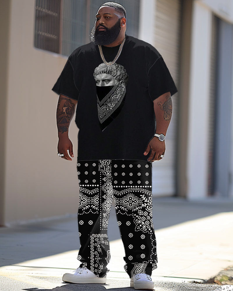 Men's Large Retro Art David Like Paisley Print T-Shirt Trousers Suit