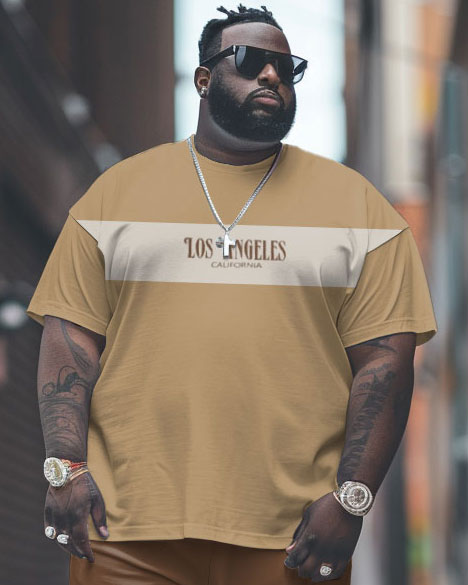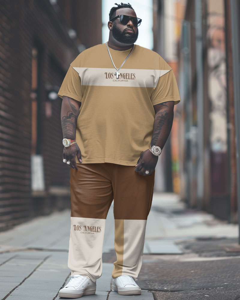Men's Large Simple Colorblock Alphabet Print T-shirt Trousers Suit