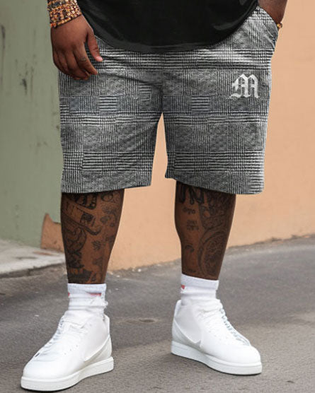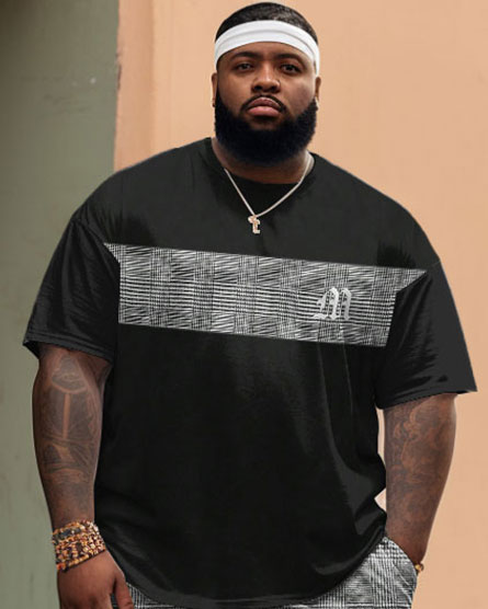 This black two-piece set for big build guys exudes endless charm. The combination of splicing design and striped printing maintains the comfort of leisure. The loose version brings an easy-wearing experience. This set can be easily matched on many occasions, allowing you to maintain a fashionable style.
