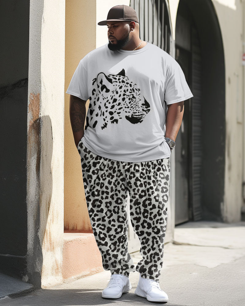 Men's Large Size Casual Street Retro Leopard Print Hip Hop Two-Piece Set