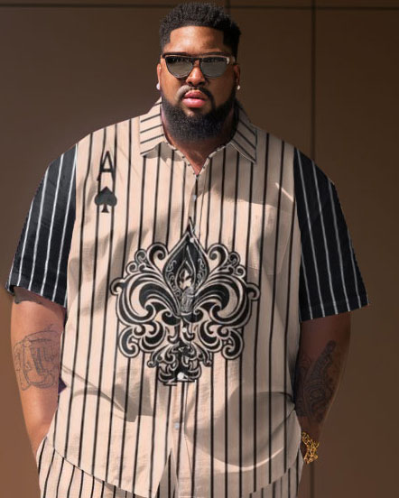 Men's Large Size Casual Striped Poker Retro Elegant Street Short Shirt Shorts Suit