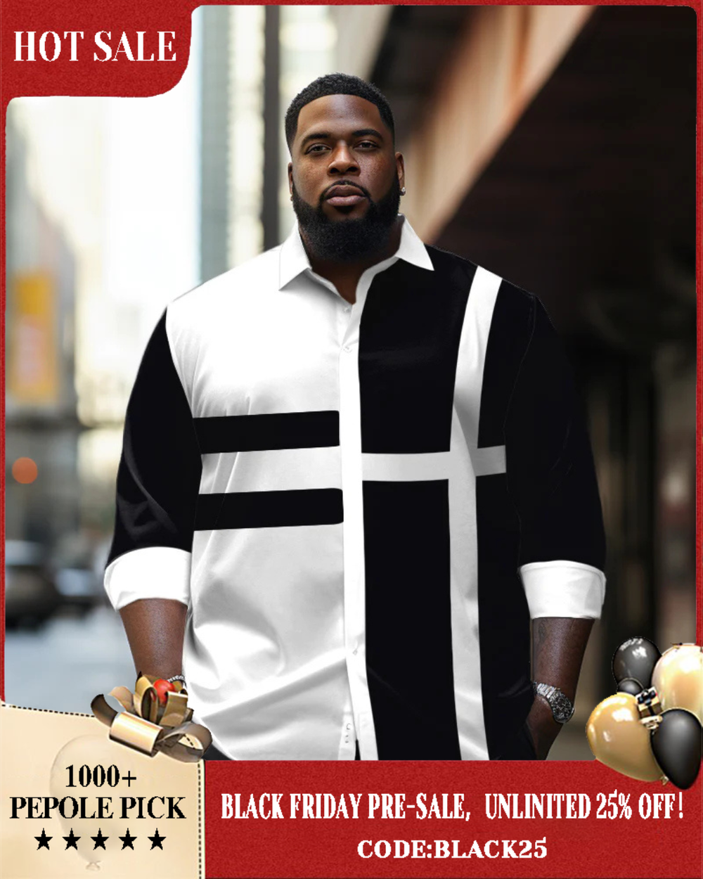 Classic and stylish, this black and white striped shirt is designed for plus-size men. The classic striped elements collide with modern color blocks to create a unique fashion spark. The fitted cut cleverly modifies the body shape. Its soft fabric is skin-friendly and breathable, allowing you to stay comfortable in different seasons.