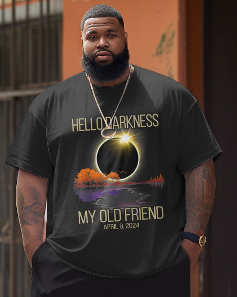 Men's Large Size Hello Dark My Old Friend Letter Round Neck Short Sleeve T-shirt