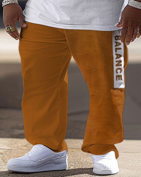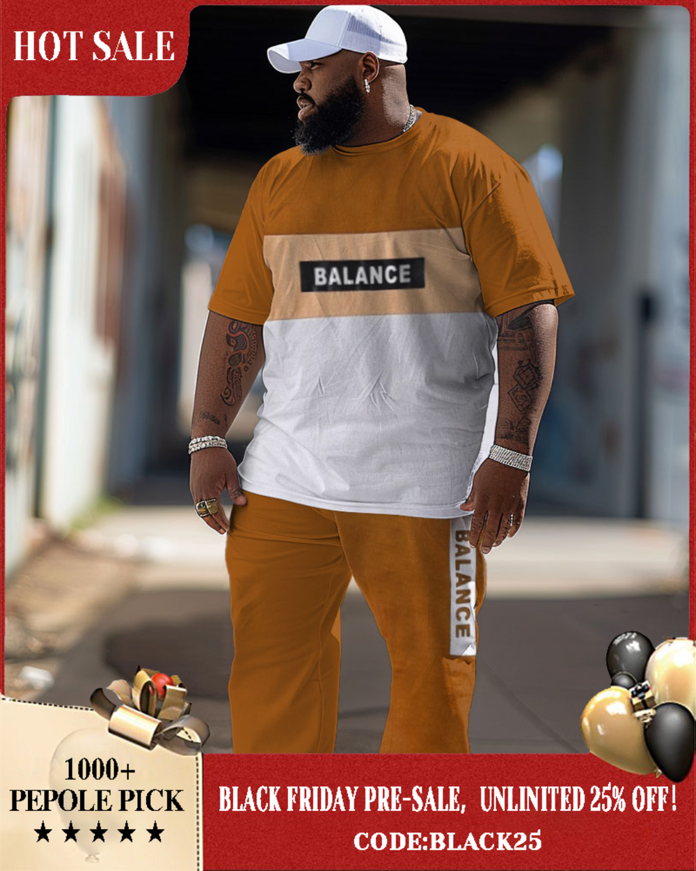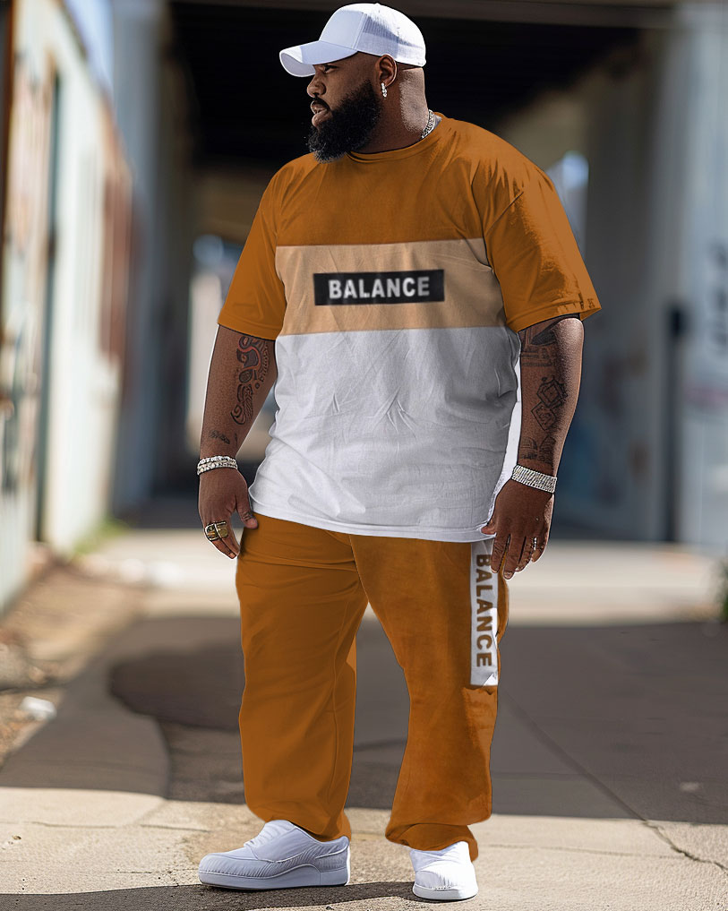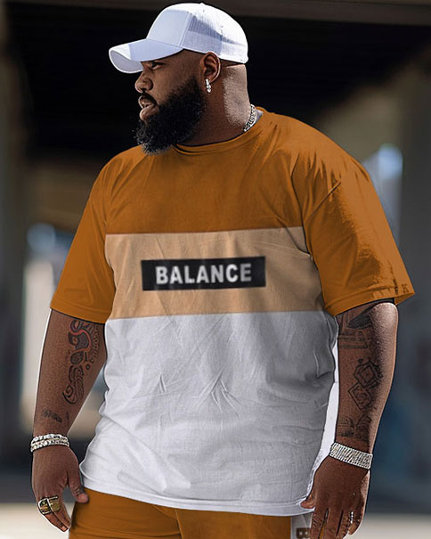 This men's big and tall two-piece set is highlighted by a unique color block design, showing a retro charm. The letters add a street and hip-hop personality element. It is tailored for large men to ensure comfort and fashion while being a versatile choice for daily wear.