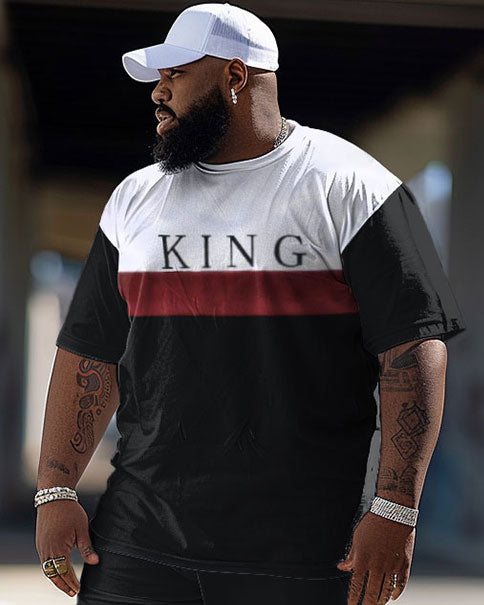 With the color splicing and the KING letter print, this men's big and tall two-piece set showcases a sense of street-style fashion. The loose cut is designed for plus-size men, comfortable and unrestrained. This set is an attitude - embrace yourself and show your unique charm.