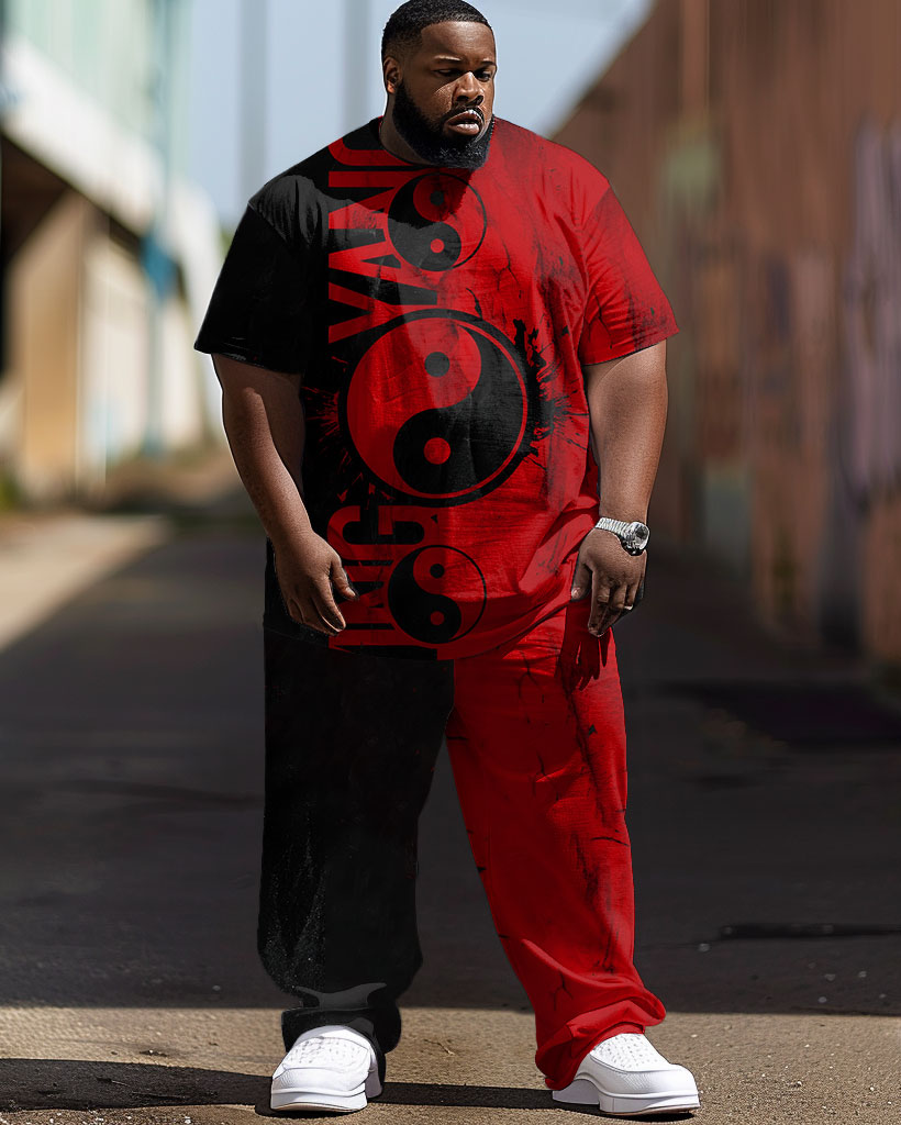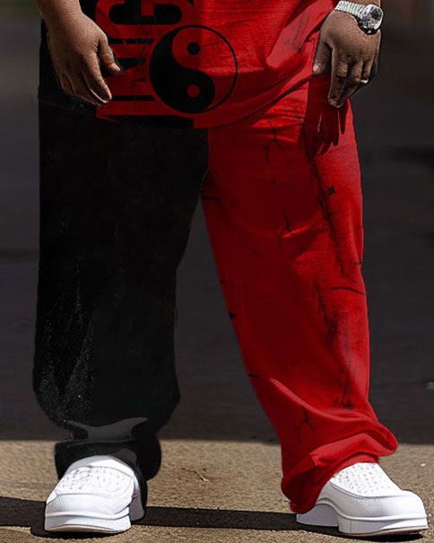 Men's Large Size Hip Hop Tai Chi Yin Yang Street Color Matching Retro Casual Two Piece Set
