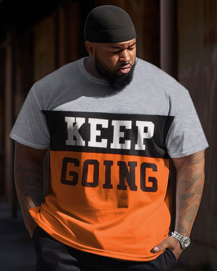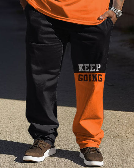 Men's large size letter KEEP GOING short-sleeved trousers two-piece set