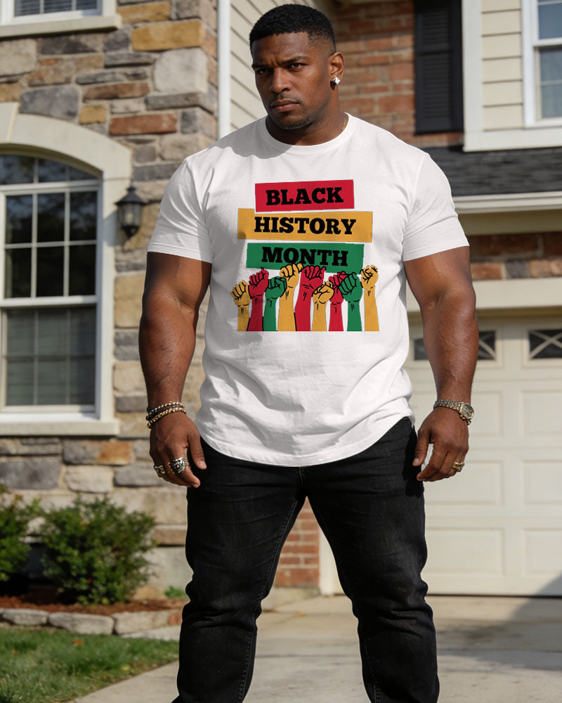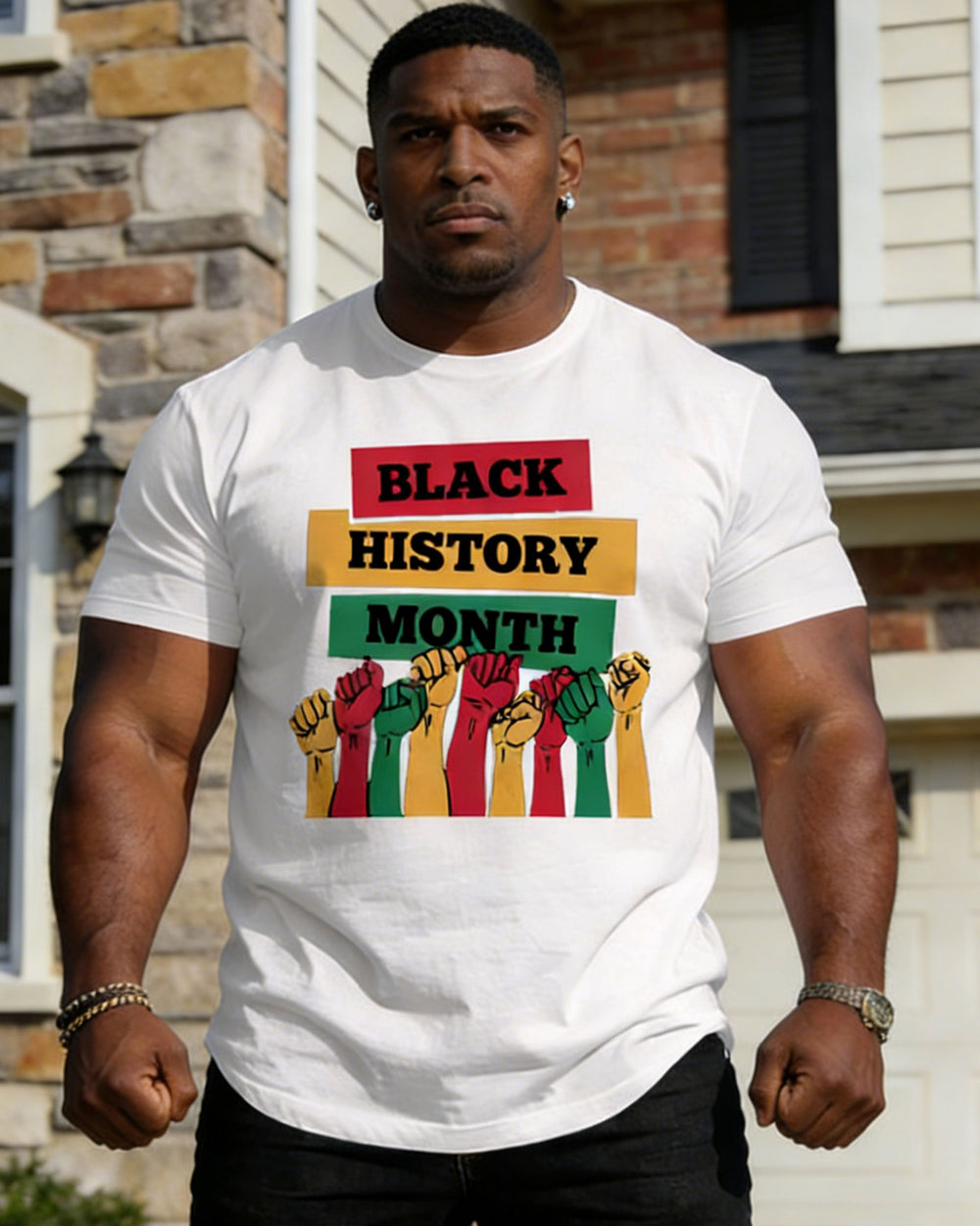 Men's Large Size Loose And Comfortable Black Festival Celebration Velvet Friends Send Relatives Slogan White Printed Short Sleeve T-shirt