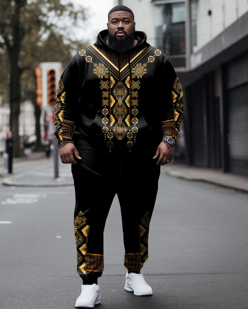 Step into timeless elegance with this big & tall vintage hoodie set, where symmetrical gold floral motifs evoke Renaissance grandeur against a rich base. The brushed thermal fabric and relaxed cut provide aristocratic comfort, equally suited for museum visits or autumn strolls - a wearable ode to retro fashion.