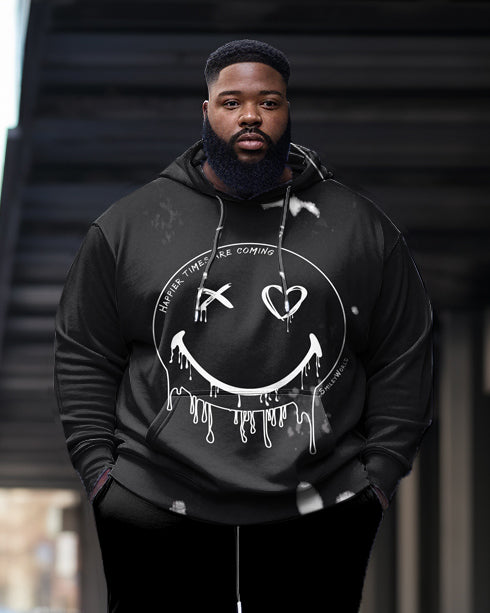 Men's Large Size Street Black Smiley Face Graffiti Fun Print Hoodie (Pack of Two)